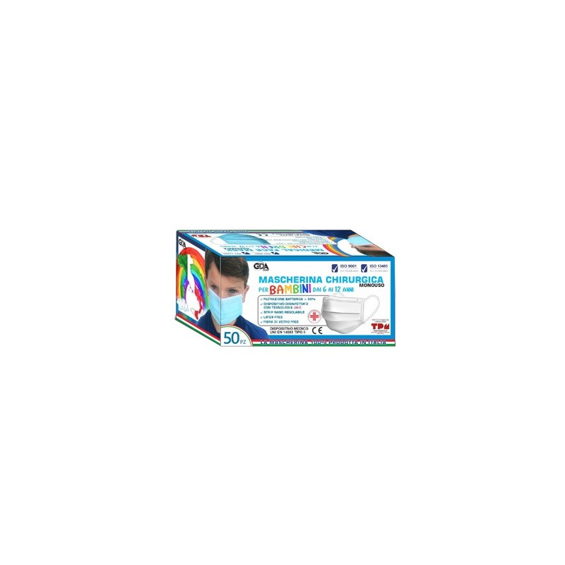 GDA Mask Mascherina chirurgica pediatrica da 6 a 12 anni 10 pezzi