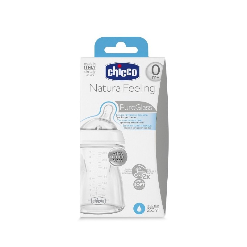 Chicco Natural Feeling Biberon Vetro Unisex Bianco da 0 Mesi 250ml 1 Pezzo