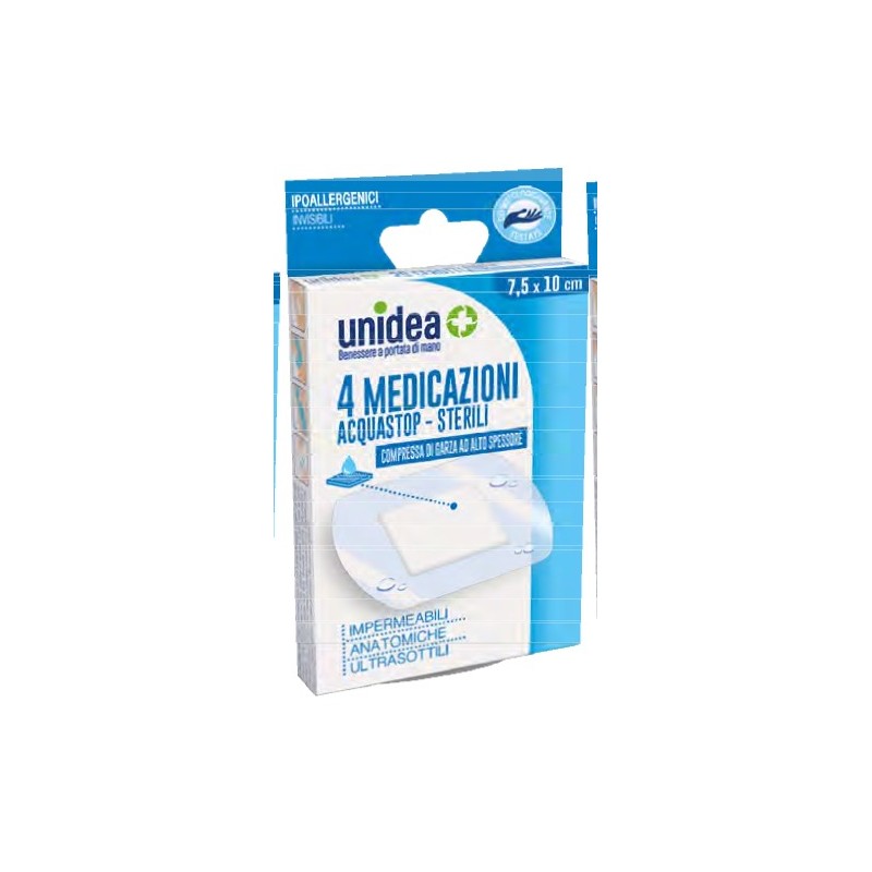 Unidea Medicazioni Impermeabili Sterili 7,5 x 10cm 4 Pezzi