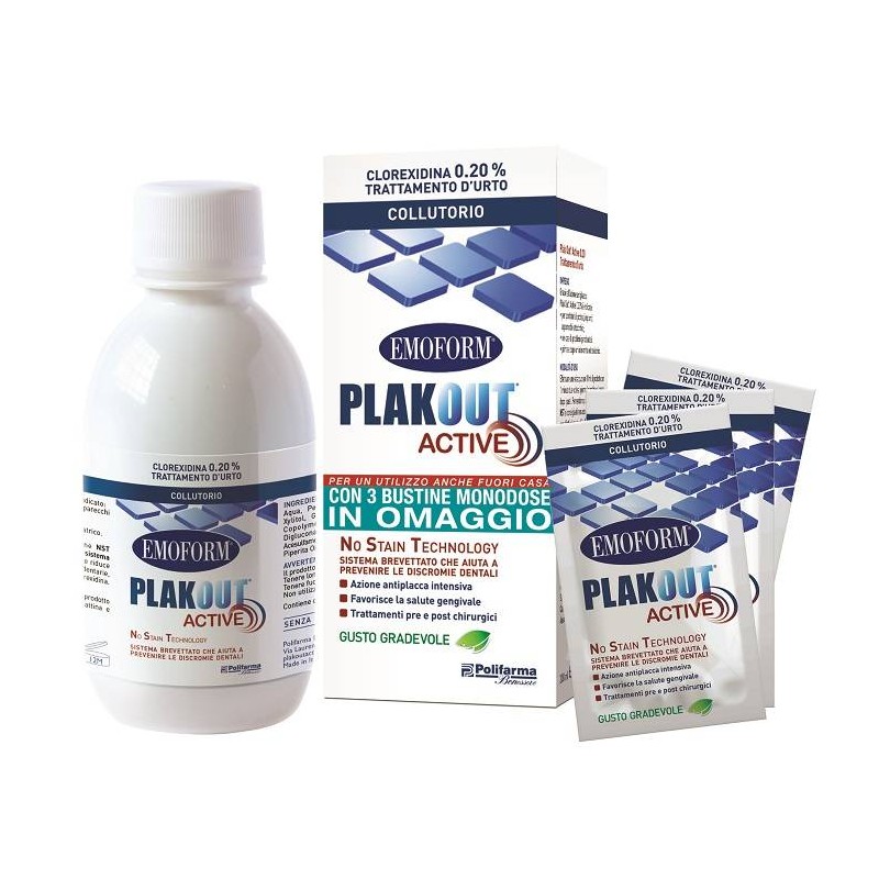 Polifarma Plakout Active Collutorio Clorexidina 0,20% 200 ml + 3 bustine Omaggio