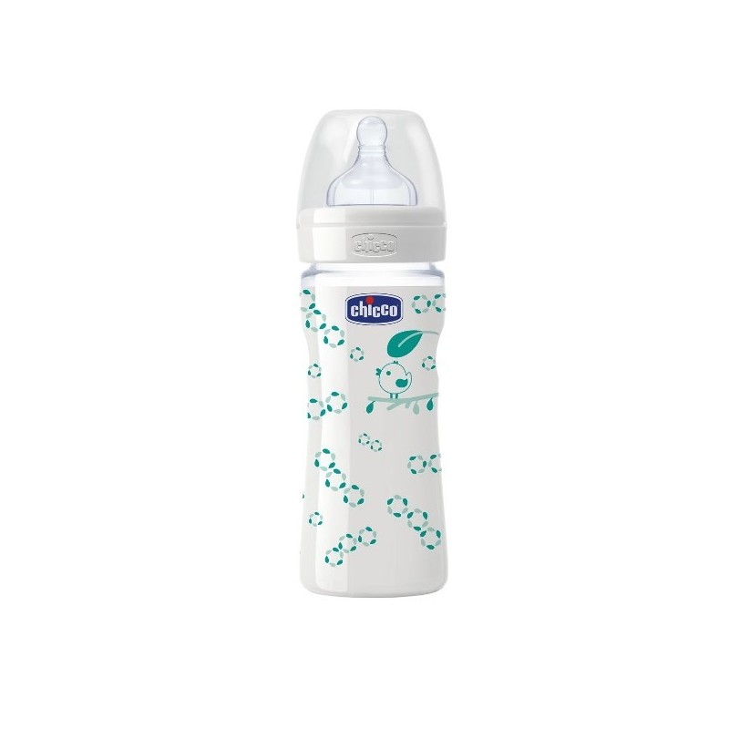 Chicco Biberon Well Being In Vetro Decorato Unisex Da 240 Ml Normal Silicone