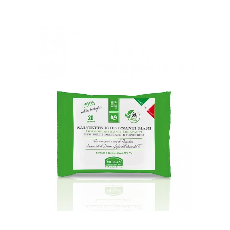 Helan Cosmesi Salviette Igienizzanti Mani Cotone Biologico 20 Pezzi