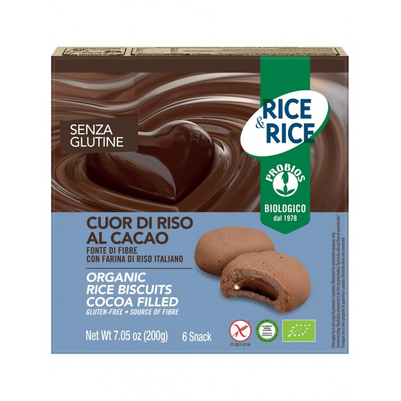 Probios Rice&Rice Cuor di Riso al Cacao Senza Glutine 6 Snack