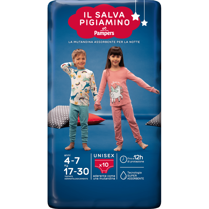 Pampers Salvapigiamino Mutandina Notte Taglia S-M 17-30 kg 10 Pezzi