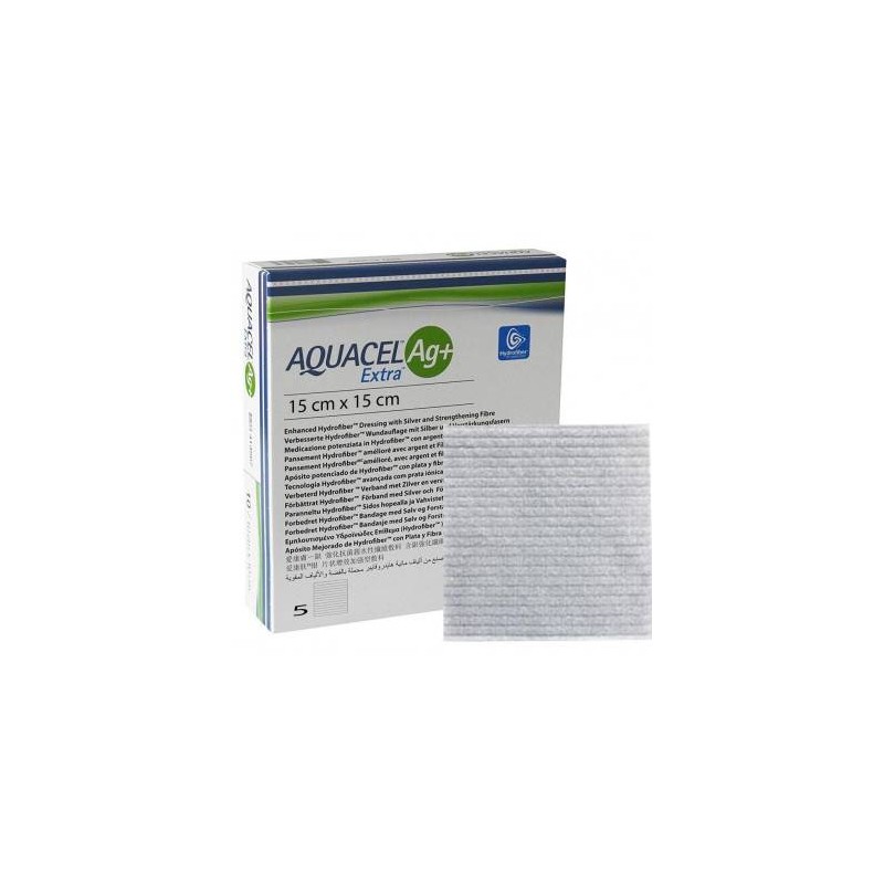 MEDICAZIONE IN HYDROFIBER E IONI ARGENTO INTESSUTA IN LYOCELL AQUACEL AG + EXTRA 15X15CM 5 PEZZI