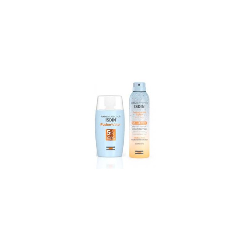 Isdin Fotoprotector Pack Fusion Water 50ml +Fotoprotector Transparent spray Wet Skin SPF50 in Omaggio