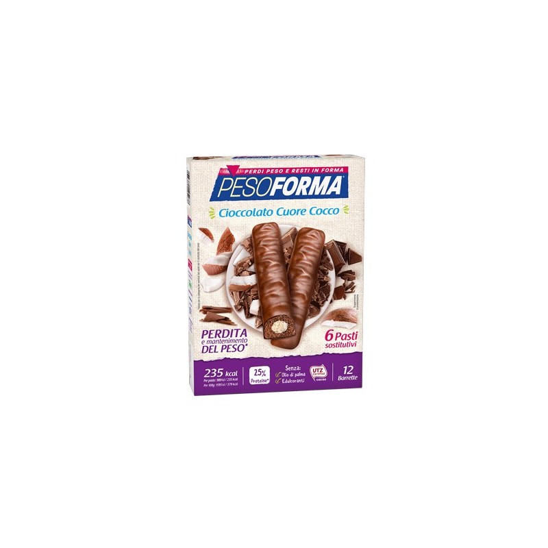 Pesoforma Barrette Cioccolato Cuore di Cocco 12 Pezzi per 6 Pasti