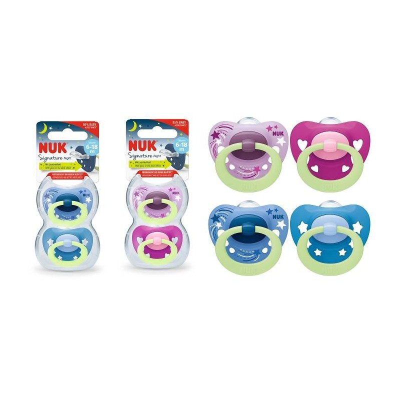 Nuk Signature Night Succhietto in Silicone 6-18 mesi 2 pezzi