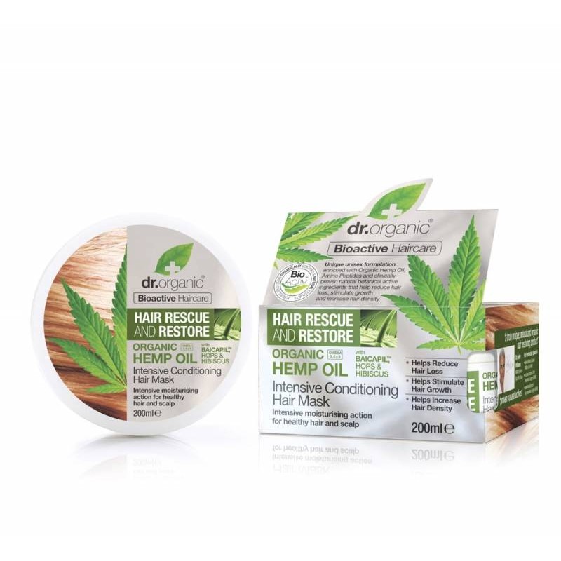 Dr Organic Hemp Oil Maschera Ristrutturante per Capelli all'Olio di Semi di Canapa